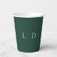 Estas tazas de papel para boda con monograma minimalista verde esmeralda pueden personalizarse con tus iniciales monogramadas. Diseñado por Thisisnotme©