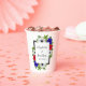 El diseño presenta flores de anémona pandas, blancas y azules patrióticas con eucalipto verde sobre un marco de color gris carbón.
