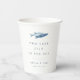 Nuestra diseño de vaso de papel costero chic para bodas de verano, fiestas de compromiso o cenas de ensayo presenta una pareja de peces acuarela azules. "Dos menos peces en el mar" aparece en elegante letra azul marino. Personalice con dos líneas de texto personalizado.