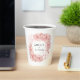Esta taza de papel bellamente diseñada presenta flores rosadas suaves y se puede personalizar con los nombres de la novia y el novio. Perfecta para bodas, compromisos, fiestas de novia o eventos románticos. Agregue su toque personal y haga que cada sorbo sea especial.