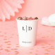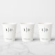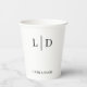 Modernas y sencillas tazas de papel boda o de ducha de novia. Texto en blanco y negro con un estilo mínimo. Simplemente agregue sus iniciales o monogramas y nombres.