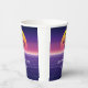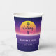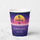 Esta taza de papel boda retro de los años 80 presenta arte de sintonización fresco, violeta y una puesta de sol sobre las líneas de neón. Esta impresionante decoración boda temática de los años 80 es atrevida y divertida, seguro que atrapará la atención de todos y les dirá que estás tirando a un fiesta de baile.