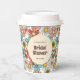 Taza de papel para boda retro con flores brillantes y coloridas hippie groovy.