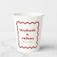 Sirva sus bebidas bodas en un estilo vintage con esta taza de papel del boda rojo oscuro del borde ondulado del retro de los años 50. Con un fondo blanco fresco enmarcado por una audaz frontera ondulada de color rojo oscuro, este diseño aporta elegancia atemporal a mediados de siglo a su celebración. Los nombres de la novia y del novio y la fecha del boda se muestran bellamente en una coordinadora fuente roja oscura, añadiendo un toque personal y sofisticado. Perfecto para recepciones de bodas, horas de cóctel, duchas de novias o fiestas de compromiso, estos vasos de papel de inspiración retro le ofrecen comodidad y un acento elegante para su día especial.