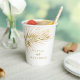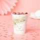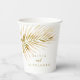 Tazas de fiesta de monograma de boda de palma dorada tropical.