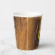 Personaliza estas encantadoras Tazas de Papel para Boda Western de Girasoles Country para tu recepción de boda de estilo rancho casual pero elegante o fiesta de soltera en un granero. Estas tazas desechables informales pero elegantes presentan una fotografía de granja de primer plano de un par de botas de vaquero de cuero marrón con una flor de girasol amarillo y un fondo de madera de granero.