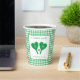 Estas tazas de papel personalizadas son perfectas para despedidas de soltera, fiestas de parejas, bodas y más con un tema de pickleball. Estas tazas presentan ilustraciones de paletas de pickleball en forma de corazón y una pelota de pickleball y están listas para ser personalizadas con tu propio titular, iniciales en las paletas y nombres completos debajo, todo con un esquema de color verde y rosa preppy con un fondo de cuadros gingham verde y blanco.