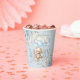 Estas tazas de papel de moda para bebés con ducha cuentan con rosas de color agua pastel azul, pampas y un lindo oso de peluche con un ramo de globo. Personalízalos fácil y rápidamente, simplemente pulse el botón personalizar it para reorganizar y formatear el estilo y la ubicación del texto. ¡Artículos coincidentes disponibles en la tienda! (c) El estudio Happy Cat Studio.