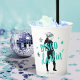 Inicia la fiesta con este divertido diseño de vaso de papel "Disco Darlin'", para toda la equipo de la novia, en plateado brillante y azul turquesa. Una silueta de vaquera con sombrero plateado brillante y tipografía llamativa de "Disco Darlin'", está acentuada por estrellas. Agrega la fecha de tu evento utilizando la plantilla proporcionada. Busca ID925 para ver otros productos de la colección de moda.