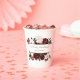 Estas tazas de papel boda con flores de color burdeos y rubia presentan ramos de flores acuáticas que enmarcan los nombres de la novia y el novio y la fecha boda. No olvide consultar la colección de platos de papel y servilletas a juego y de otros cuadros de boda.