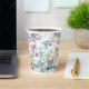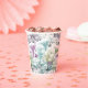 Un suave ramo de flores de varios colores pastel. Los colores rosa, aqua y crema acentúan este vaso de papel de bonito.
