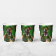 Un amigo peludo detrás de las manillares de una brillante bicicleta verde, usando un traje verde del Día del San Patricio que hace que las cabezas se vuelvan. El perro está vestido con un conjunto festivo, con una corbata verde de arco y un sombrero superior a juego que se sienta cómodos sobre su cabeza. El conjunto presenta un diseño intrincado de rocas de champú y leprechauns, lo que deja claro que este perro está listo para celebrar el Día de San Patricio con estilo.