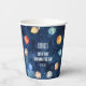 Get ready to launch into fun with this cosmic space-themed birthday party paper cup! Featuring a deep galaxy background filled with colorful planets, glowing stars, and a cheerful astronaut holding balloon-like planets, this design sets the perfect tone for a stellar celebration. Bold white and blue typography announces the birthday child's “trip around the sun,” making it ideal for a 10th birthday—or easily customizable for any age. Great for budding astronauts or space lovers, this invitation adds a whimsical, adventurous vibe to your party plans. Easily personalize with your event details and let the countdown to fun begin!