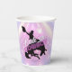 Taza de papel de despedida de soltera disco divertida diseñada para el equipo de la novia. En hermosos colores gradientes desde lavanda hasta periwinkle y rosa con una bola de discoteca funky, silueta de vaquero domando un bronco, fuente retro glamorosa "Bride 'em Cowboy" (el equivalente country de 'ponle un anillo') y fondo de luces de discoteca. Busque ID928 para ver otros productos de esta colección de moda.