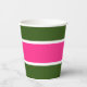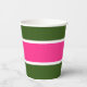 Este diseño deportivo, muy cuidado, presenta una amplia franja horizontal ancha y ancha de color rosa brillante realzada con franjas blancas delgadas contra un fondo vibrante y elegante.