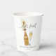 Vasos de Papel para Fiesta de Compromiso Brindemos. Diseñados con una hermosa botella de champán dorado acuarela. Artículos coincidentes en nuestro diseño de fiesta Cava.