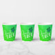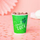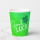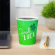 Buena Suerte Cuatro Hojas, Chamrock St. Patrick's Day Paper Cups. Patrón verde abstracto moderno con tipografía blanca moderna cita la buena suerte y el trébol hecho a mano con cuatro hojas para la suerte.