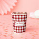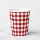 Navidades de cheques de búfalo rojos y blancos tazas de papel fiesta presentan un rectángulo blanco en el centro que dice "Feliz Navidad" en un alfabeto rojo oscuro con tu nombre debajo en un moderno tipo de letra sans serif. Perfecto para una fiesta de vacaciones. Personalízalo con tu nombre y texto en la barra lateral. Para ver el diseño Patrón de plástico de Gingham rojo y blanco sobre la coordinación de los suministros de los fiestas, haga clic en el enlace de la colección de Artes Rocklawn. Imagen creada digitalmente. Copyright ©Claire E. Skinner. Todos Los Derechos Reservados.