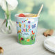Estas tazas de papel para cumpleaños de insectos - perfectas para "jugo de insecto" son divertidas y coloridas, con un fiesta de insectos que incluye una abeja linda, araña morada, oruga, hormiga, mariposa y caracol - todos celebrando el cumpleaños de tu hijo. Bandera arcoiris, flores y nubes blancas hinchadas le dan un toque fiesta. ¡Tanto a los chicas como a los chicos les encantarán estos personajes de insectos!