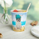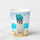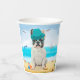 El perro lindo sentado en la playa es un regalo perfecto para alguien que ama esta raza de perro.