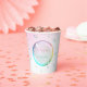 Burbujas de agua únicas Copas de papel de cumpleaños con fondo de color rosa adecuado para niñas pequeñas.