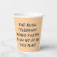 Texto que humorísticamente dice "El telégrafo arbusto funciona más rápido que el Wi-Fi en este lugar". "Bush telegraph" es la jerga australiana para la red de chismes, insinuando que la comunicación boca a boca es más efectiva que internet.