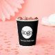 Perfect for an office party or presentation, these logo cups are simple in design. You can change the background color to match the color that coordinates with your company logo. The type can be used for company contact information or for a place to add a special occasion - such as an anniversary event for your business.