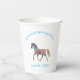 Copa personalizada de papel de la fiesta de cumpleaños. Cuenta con un gráfico caballo arco iris compuesto por coloridas olas. Es fácil de personalizar ahora con los detalles de su fiesta. Agradable para un chica adolescente enérgico. Puede elegir el color de fondo.