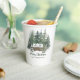 Perfecto para fiestas Navidades y entretenimiento diario de temporada, estas tazas rústicas personalizadas de papel de bosque cuentan con una acogedora cabaña enclavada en un bosque de pinos cubierto de nieve. *Si necesitas ayuda de diseño o quieres este diseño en otros productos, por favor contacta conmigo a través de Zazzle.