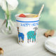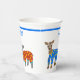 Estos suministros de fiesta personalizados con ilustraciones de cabras lindos y realistas usando pijamas los hacen perfectos para fiestas maduros. Estas tazas de papel están listas para ser personalizadas con tu propio mensaje con letras azules brillantes.