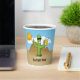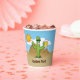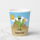 Personalizado de cactus sonrientes con gafas de sol en el paisaje desértico sosteniendo una taza de cerveza y dando pulgares hacia arriba. Texto personalizado en ambos lados.