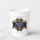 Tazas de papel elegantes con Caduceo, para el graduado de estudiante de medicina. Hermoso estandarte en azul marino con marco de filigrana dorada. Fondo blanco que se puede cambiar a cualquier color que desees. Agrega tu nombre, universidad y año de graduación.