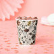 Estas tazas de papel personalizado del día de Acción de Gracias presentan una escena de la cosecha de otoño con calabazas coloridas, cráneos de vacas adornadas con rosas, bellotas y follaje otoñal sobre un elegante fondo de marfil.