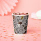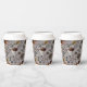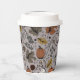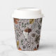 Estas tazas de papel personalizado del día de Acción de Gracias presentan una escena de la cosecha de otoño con calabazas coloridas, cráneos de vacas adornadas con rosas, bellotas y follaje otoñal sobre un elegante fondo de taupe.