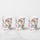Patrón lindo, divertido y adorable con tazas de café, granos de café y corazones. Un regalo moderno y de moda, perfecto para los amantes del café en su vida.