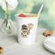una divertidísima taza de café personalizado con ojos somnolientos que recuerdan a todos que el café es lo primero