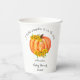 La Copa de Papel de Baby Shower de la Caída de Calabaza con calabaza floral adorable naranja de acuarela y palabras pequeñas calabaza está en camino.
