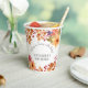 Añade un toque encantador a tu celebración con estas tazas de papel personalizadas de Baby Shower Falling in Love Otoño. Diseñadas con un toque de moda boho, estas tazas cuentan con flores y hojas de otoño en suaves tonos rústicos de marrones mocha, naranjas y bayas rojas, bellamente entrelazadas con un fondo blanco moda y fresco. Perfecto para tu Baby Shower de otoño, cada taza se personaliza con Falling in Love with Baby en una alegre tipografía de escritura caligráfica y tu Nombre, añadiendo un elemento sofisticado y personal a tu evento. Estas tazas de papel botánico de otoño son ideales para servir bebidas con estilo y gracia en su ducha de bebé inspirada en el otoño.