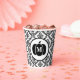 Este diseño de taza fiesta presenta una calabaza negra sobre un fondo de damasco blanco y negro. Puedes personalizar con tu inicial.