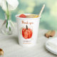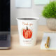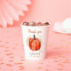 Cute taza de papel con diseño de calabaza acuarela, con un mensaje de agradecimiento y texto personalizado para el primer cumpleaños de un niño. Cuadros de papel de cumpleaños diseñados para una pequeña fiesta de cumpleaños con tema de calabaza, con calabaza acuática pintada a mano con fondo de lavado de acuarela. cumpleaños temático naranja y otoño.
