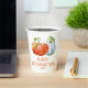 La taza de papel Happy Friendsending es una maravillosa adición a tus festividades de otoño, perfecta para tomar tu bebida caliente o fría favorita mientras disfrutas de la compañía de amigos y familiares. Presenta un diseño llamativo de calabazas blancas y naranjas quemadas con hojas verdes que le darán un toque de elegancia a cualquier ocasión. También puede personalizarlo con su propio texto y fecha para hacerlo aún más especial.