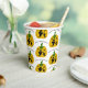 Estas tazas de papel presentan calabazas naranjas, fantasmas negros, estrellas y lunas con las palabras "Halloween feliz" encima del diseño. Esto es perfecto para una fiesta de Halloween o suerte.