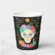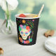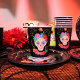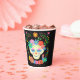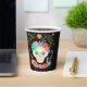 Encantador Sugar Skull enmarcado con flores de colores, pan dulce y velas brillantes.