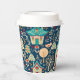 Exquisitos vasos de papel con bonitas casas nórdicas rodeadas de árboles, flores y aves. Este alegre estilo de arte folclórico escandinavo se realiza en marina, turquesa, rojo y tostado.
