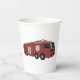 Un camión de bomberos de aspecto futurista. Este diseño parece realmente efectivo en estas tazas de papel