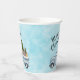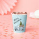 Copas de papel con un diseño festivo. Camión con Navidades de pinos junto con algunos animales de bosque. Un oso, un zorro y un ciervo parados en la parte de atrás yendo a dar un paseo. Diseño creado con acuarelas.