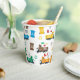 Un lindo patrón de reciclar camiones de basura de colores con papeleras de reciclaje y reciclables. Reciclando camiones de basura verdes, azules, amarillos, marrones y naranjas reciclando papel, plástico, metalizado, vidrio y compost. Perfecto para los amantes de los camiones de basura grandes o pequeños.