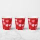 Un patrón omnipresente de conversaciones de caramelos que dice "Te amo", "Sé mío", "Bésame", "XOXO" y "Abrazo" en rojo, rosa y rosa que se desliza sobre un fondo rojo de San Valentín