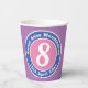 Conmemorar un octavo cumpleaños con una taza de papel que está decorada con el nombre del destinatario, así como su edad y fecha de nacimiento.