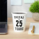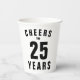 Saludos por el 25 aniversario boda de la celebración fiesta Cups de papel. Plantilla moderna de tipografía con edad y nombre personalizado. Impresión a dos caras.